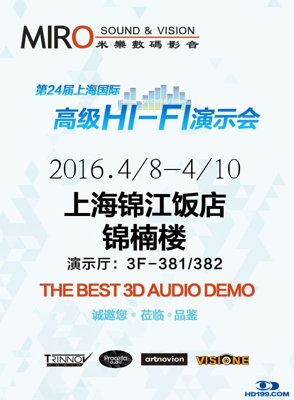 第24届上海国际高级Hi-Fi演示会将于2016年4月8日~10日在上海市黄浦区茂名南路59号,上海锦江饭店举行。