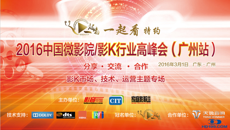 由影音中国网、《家庭影院技术》杂志主办,广州一起看信息科技有限公司特约冠名的“2016中国微影院/影K行业高峰会(广州站)-影K市场、技术、运营主题专场”将于3月1日在广州琶洲展馆二楼会议区举行,目前峰会正在紧张有序筹备中。