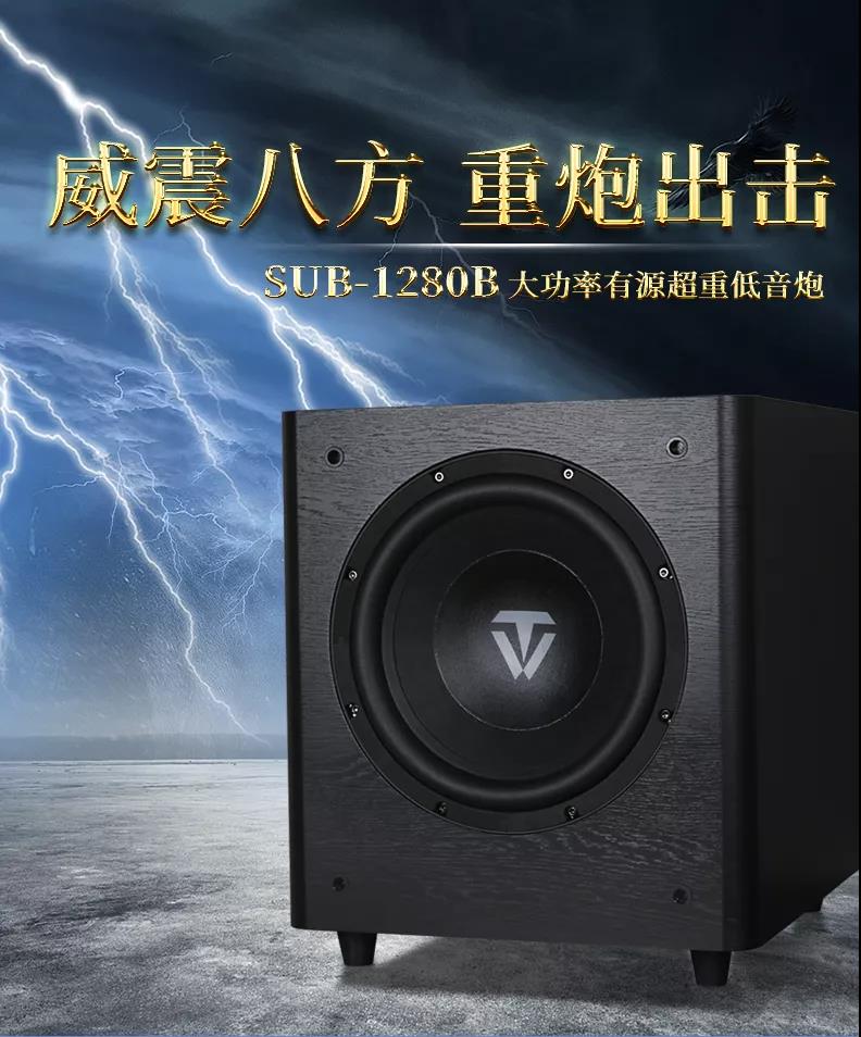 SUB-1280B大功率有源超重低音炮,是天逸专门为全景声高清家庭影院设计生产的重量级产品!