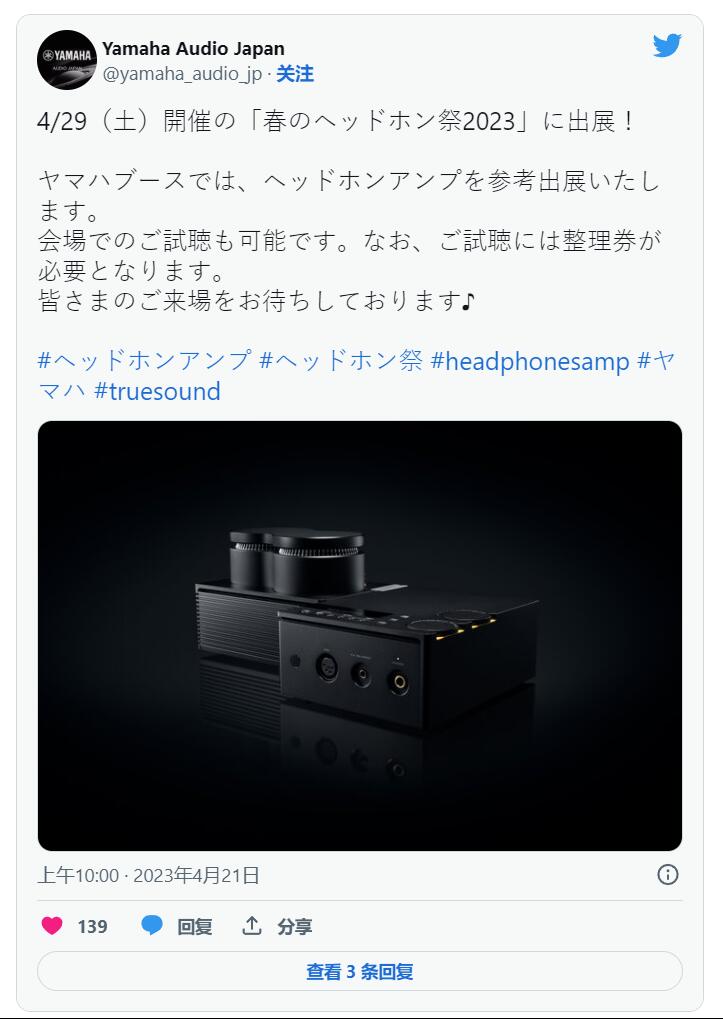 雅马哈宣布将在 4 月 29 日中野太阳广场(日本)举行的“2023 春季耳机节”上展出一款耳机放大器。