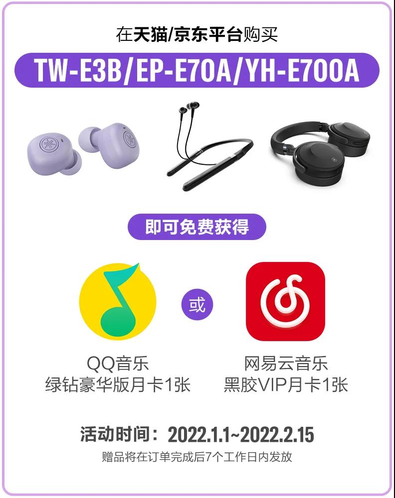 年末大促!买雅马哈指定耳机送音乐App会员月卡。年关将至,雅马哈年末耳机促销活动来啦!
