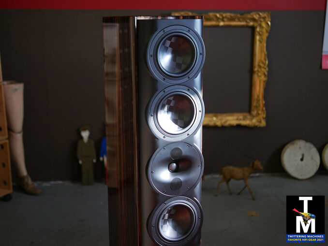 Perlisten S7tse落地扬声器是由4个7in(128mm)编织格纹图案的TeXtreme TPCD振膜喇叭组成的低音部分,它们垂直对称分布在中央DPC波导的上下方。根据Perlisten官方的说法,其中间部分的波导是DPC(指向性可控)阵列专利技术,它包括一对上下分布的1.1in(28mm)TeXtreme TPCD中音喇叭,以及一个中央1.1in(28mm)的纯铍高音喇叭组成,这种对称设计对于我的强迫症来说是福音。扬声器外饰面我们可以选择高级的黑檀木钢琴漆,但好像对我而言,它的档次有点高,我对这方面没有特别的追求,所以我选择了普通的黑色钢琴饰面。