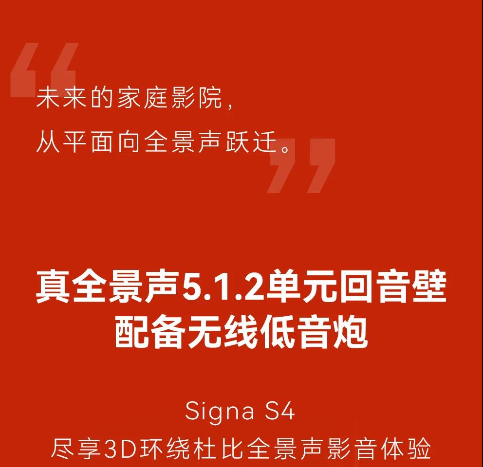 真全景声5.1.2单元回音壁 配备无线低音炮 Signa S4 尽享3D环绕杜比全景声影音体验
