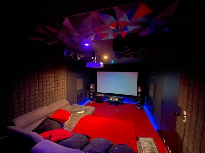 出于对电影和视频游戏的热爱,大卫在一个朋友的帮助下,在地下室构建了自己的私人影院,目的是为了玩PS5游戏和看电影,图像和声音质量都很不错。这个房间的特点采用了双投影仪,一个Full HD型号用于游戏,第二个4K HDR UHD型号用于电影。