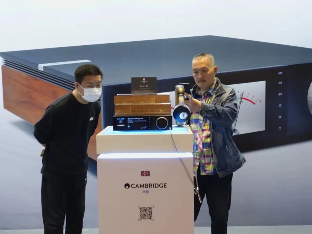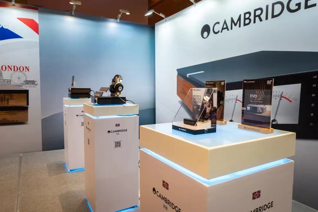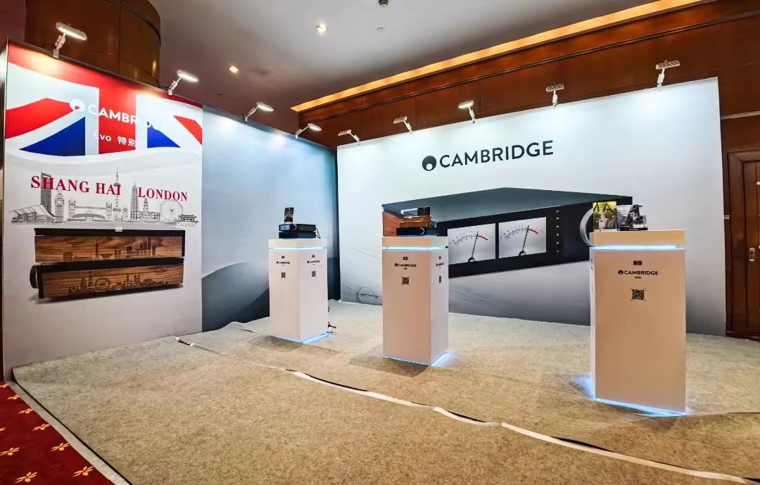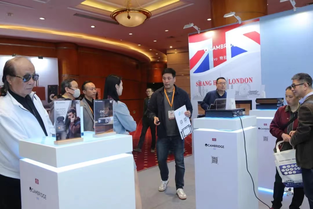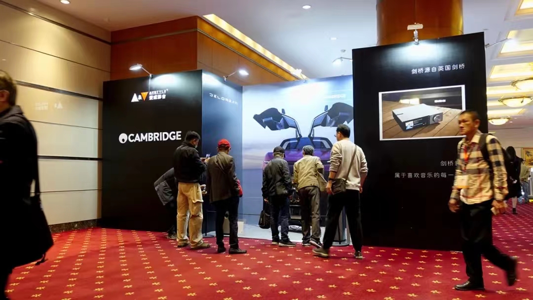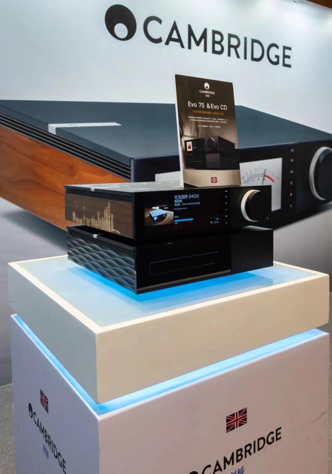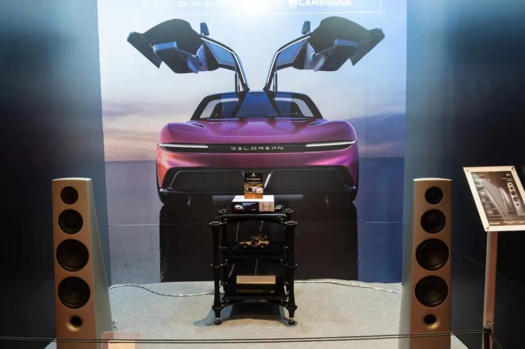 三楼的展区最为引人注目。一进入展厅,就会被Cambridge Audio英国剑桥展区的展示所吸引。EVO 150 DeLorean 特别版与50周年纪念版旗舰EDGE S扬声器的结合,为音乐爱好者带来了前所未有的视听体验。