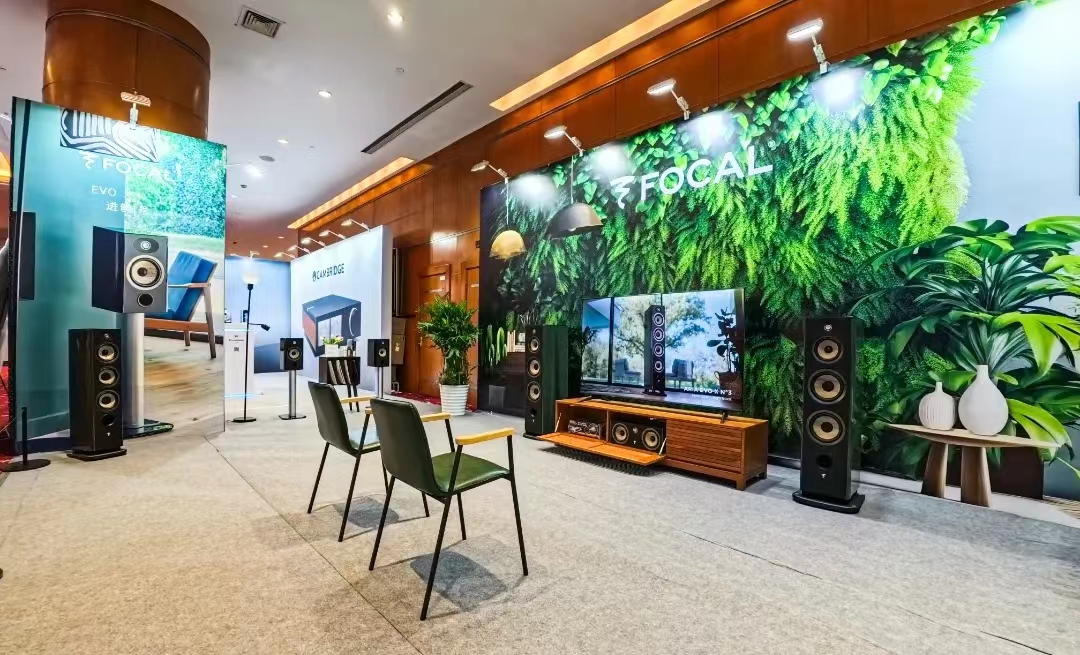 法国Focal劲浪区域被打造成了一个令人心驰神往的“绿野仙踪”客厅环境。全新EVO X进韵系列以其独特的设计和浓郁的法式风情展现出音响和视觉的和谐,让人陶醉其中。