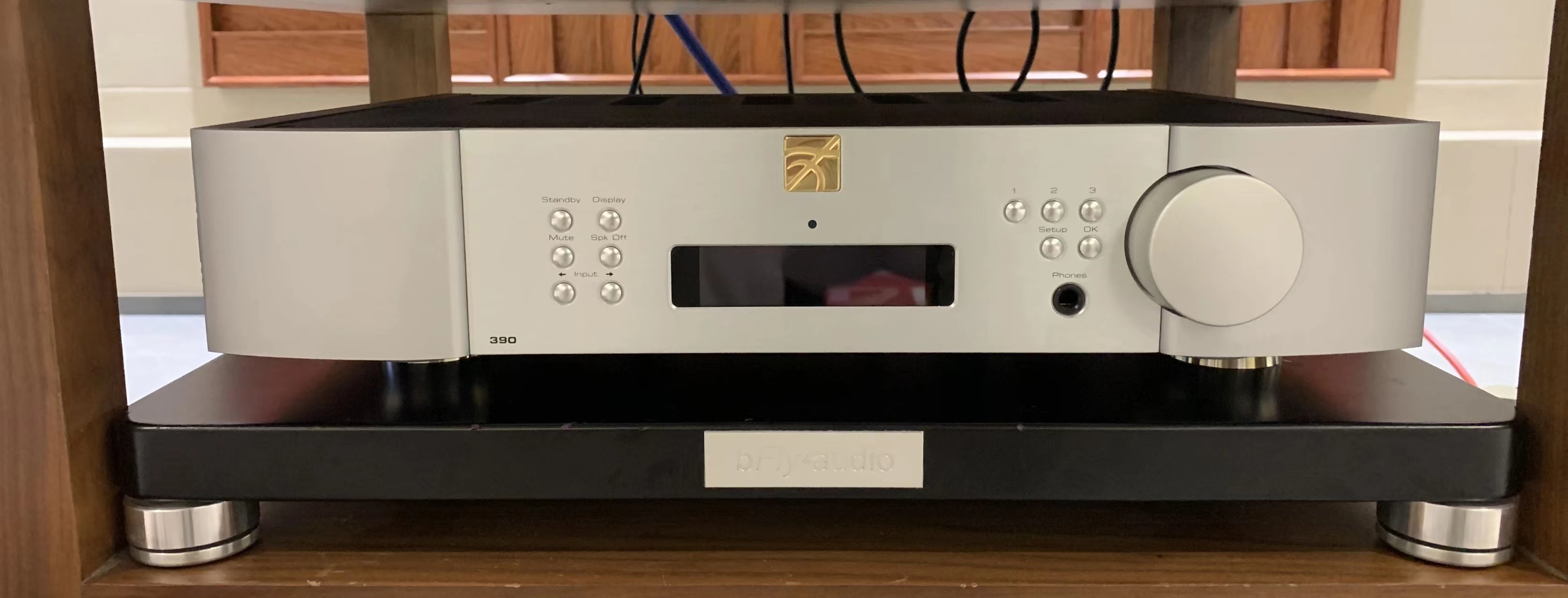 唱放也是来自日本的心乐Soulnote的。前级是加拿大惊雷Simaudio 390前级功放,后级用两台加拿大惊雷Simaudio 860A单声道功放分别桥接在两台DALI达尼的DALI达尼皇室至高 EPIKORE 11落地音箱去推动。