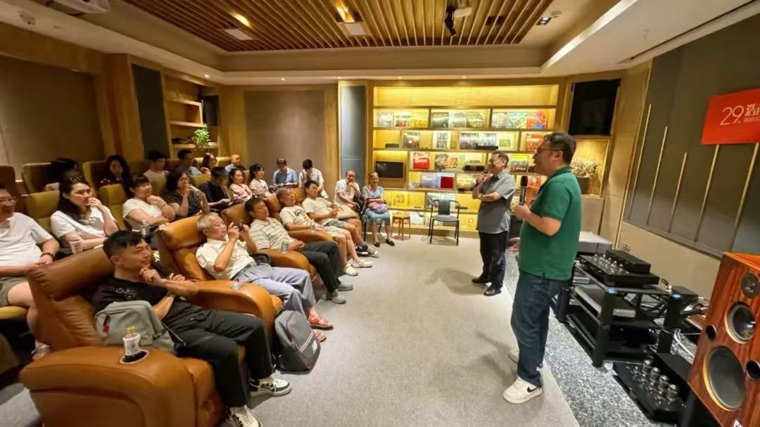 李总带领大家从音乐、音色角度品味雨后初晴音箱,分别给大家播放了多首试音神曲,从钢琴、鼓声、小提琴、现代电子乐、古典音乐、流行歌曲、人声等,不同类型的乐曲,雨后初晴都能表现出温暖绝美的音色,让在场的听众沉浸在余音绕梁三日的氛围中。