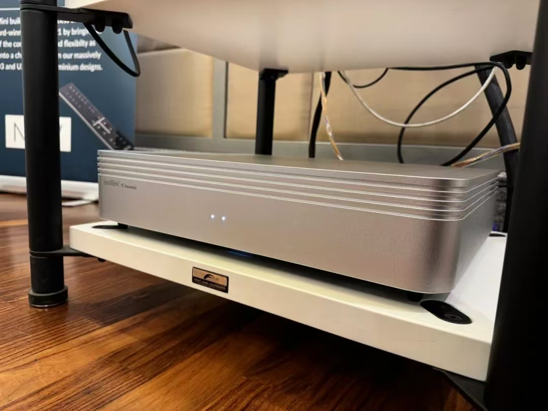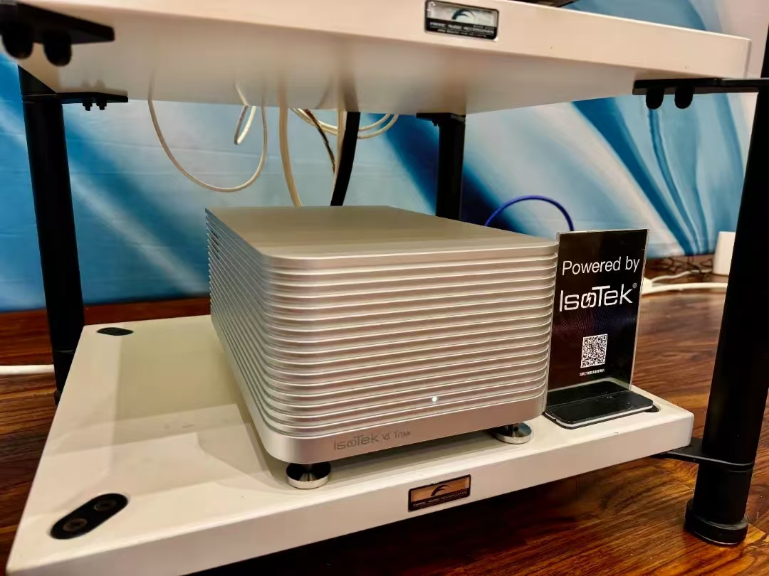 当然搭配的其他产品也很有意思。全套线材刚才提到是来自美国的JPS LABS,这个已经由很多年历史的线材品牌售价一点也不便宜。从电源线,到信号线,到喇叭线一组下来估计售价和三大件相差无几了。另外还再加上一台来自英国Isotek V5 Titan的电源处理器和专用脚钉。哈哈所以会有人说酱油贵过鸡,但确实是真的很好听的组合。另外爱威影音也专用了测试软件进行调试,也极力让这套系统获得最佳效果。