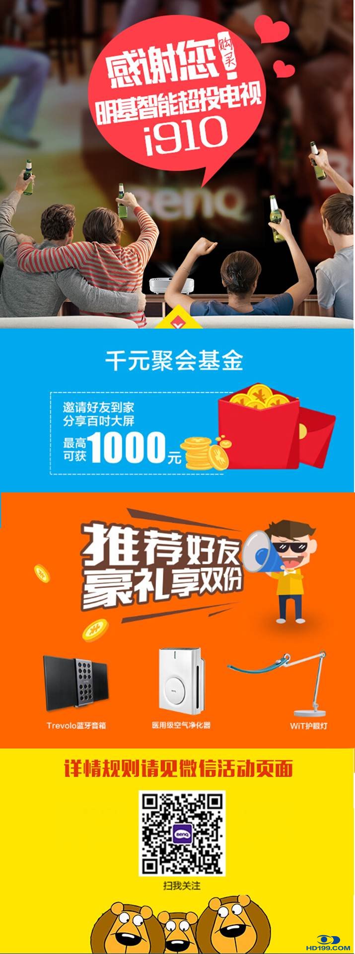 凡是之前购买明基i910智能超投电视,成为天使用户的前100位消费者,现在可以参加会员活动聚会赢千元基金!