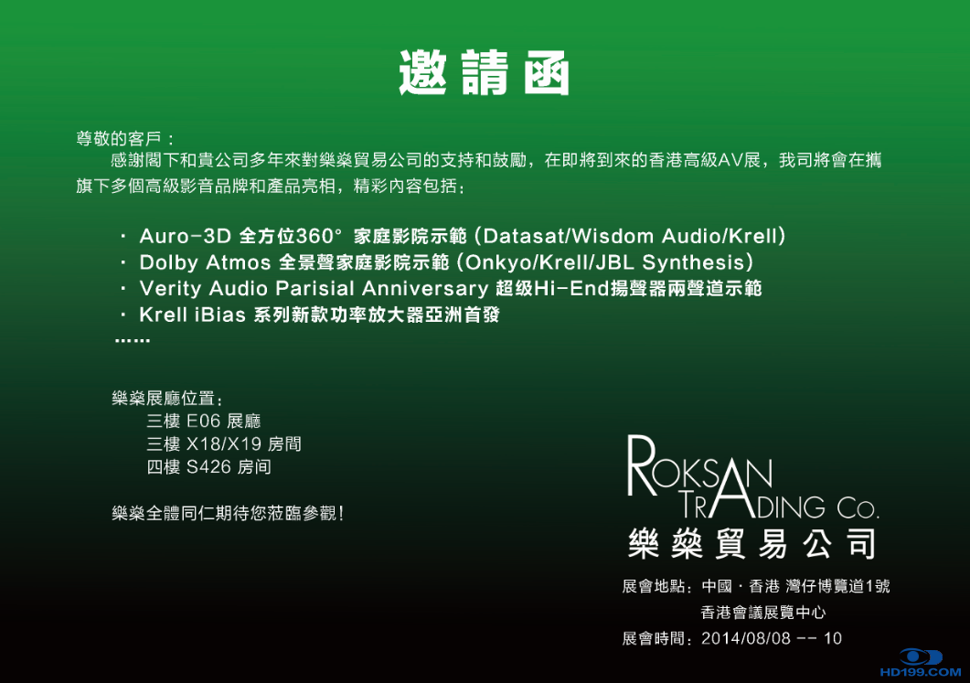 『2014香港高级视听展』将于8月8日(周五)至8月10日(周日)一连三天在香港会议展览中心隆重举行。