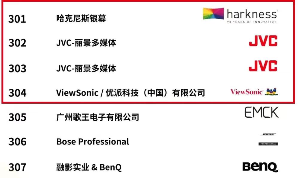 上海丽景在TAS展会有4个展房:301展示哈克尼斯银幕,302-303展示JVC 8K电影投影机,304展示优派4K激光新品。欢迎新老客户莅临鉴赏交流。