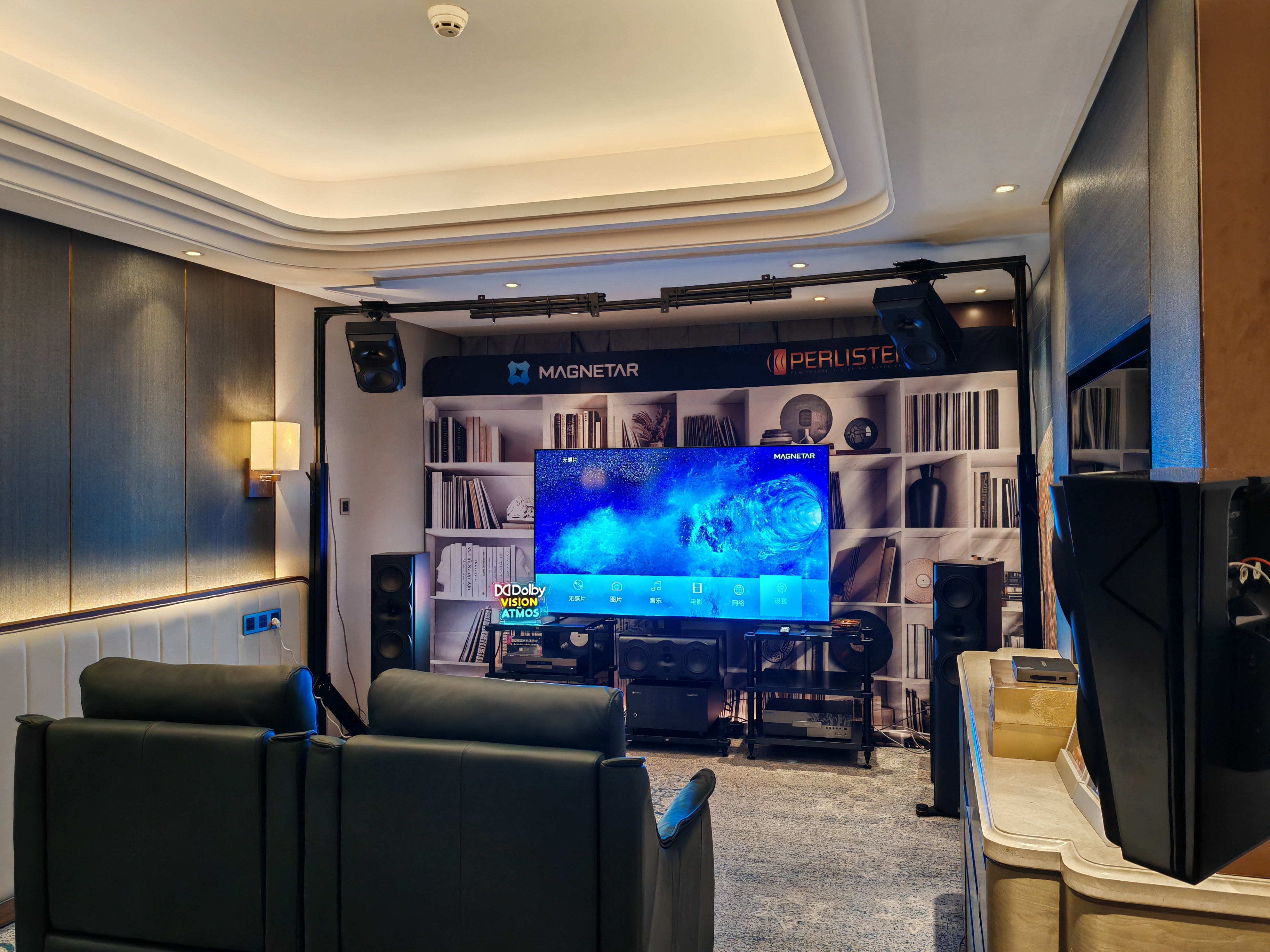 咦!这个影院空间看上去和我家客厅差不多哟!没错,这就是我们本次展会的主题“Hi-End全景声客厅影院”。熟悉羽声科技和我们代理Perlisten品牌的朋友对于我们在音响展的风格印象可能是:器材上顶配,动辄26或者32通道的超大型全景声系统。