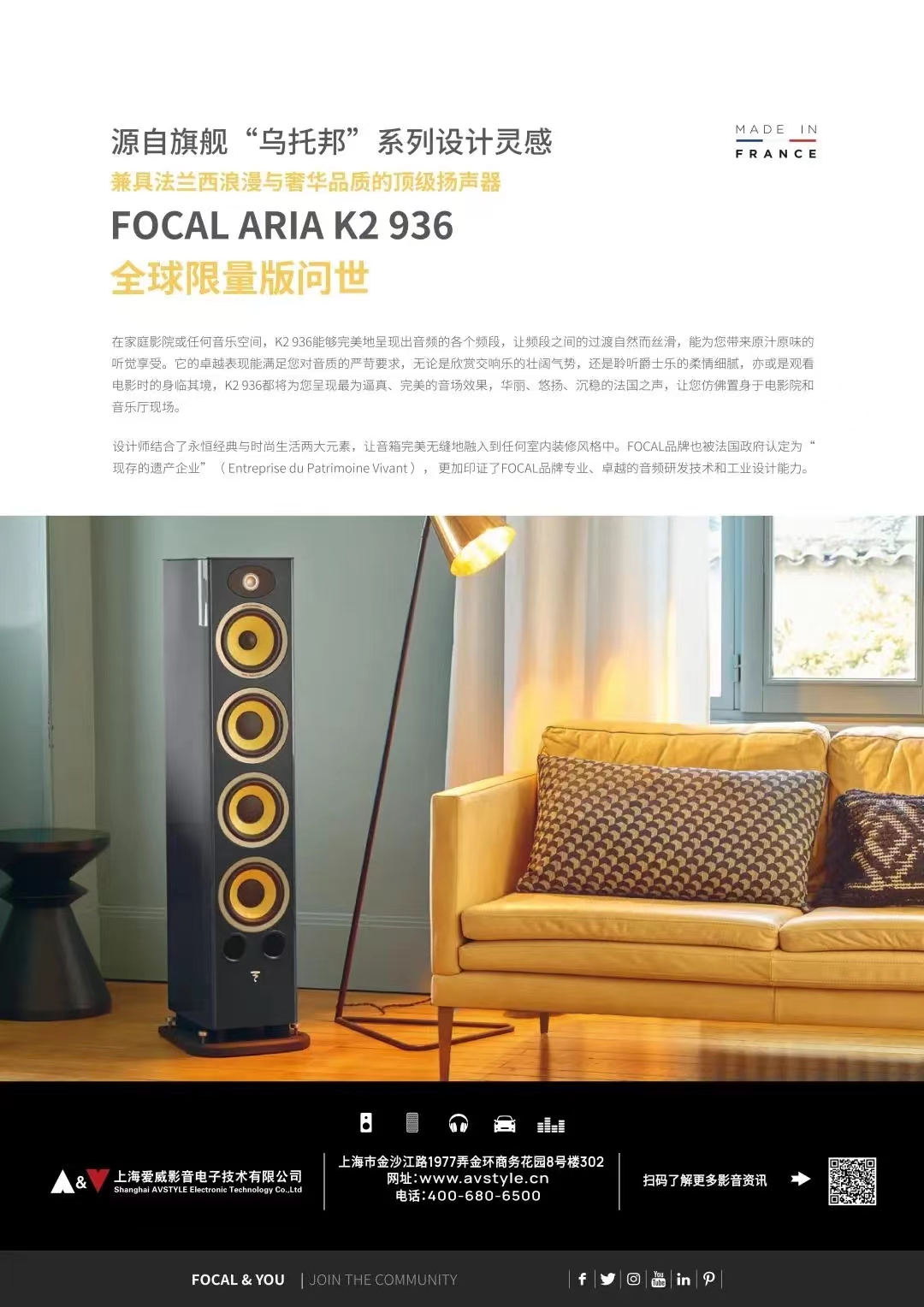 源自旗舰“乌托邦”系列设计灵感 Focal Aria K2 936全球限量版