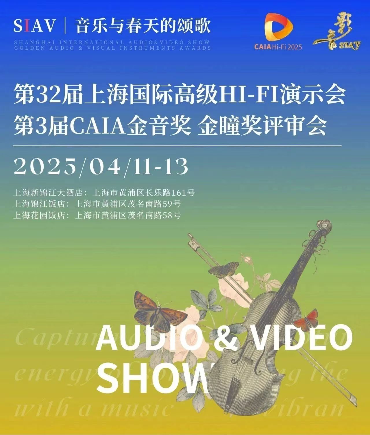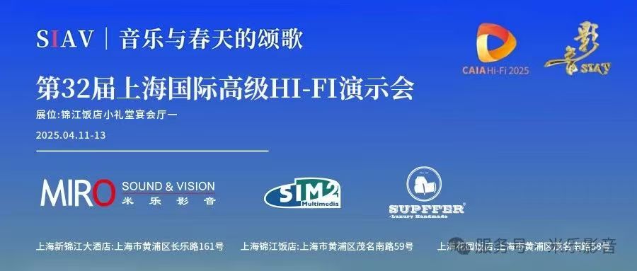 2025第32届SIAV上海国际高级Hi-Fi演示会将于4月11-13日在上海锦江饭店举行。