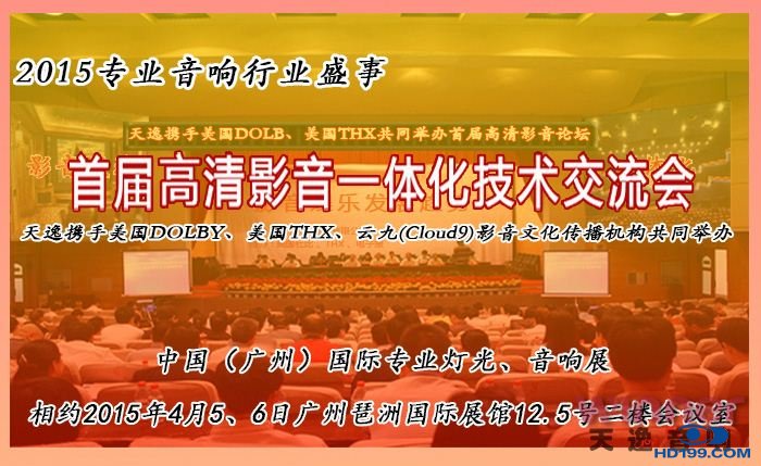 在一年一度全国规模最大的2015年广州专业灯光音响展会期间,专门从事专业高清影院研发生产的广州天逸电子有限公司,将携手美国DOLBY,THX等世界知名音响技术公司,共同举办首届高清影音一体化技术交流会。